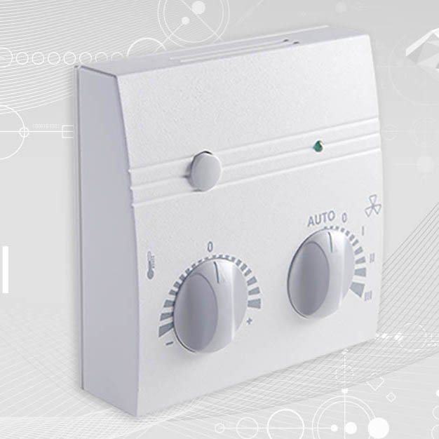 Pinnapealne ruumikontroller (valikulise ekraaniga) tagab mugava ja individuaalse temperatuuri reguleerimise eluruumides, hotelli- ja kontoriruumides. Saadaolevad juhtelemendid on seadistuspunkti potentsiomeetrid, pöördlülitid ventilaatori astme valimiseks, hõivatuse nupud ja LEDid oleku tagasiside andmiseks. Olenevalt tüübist saab kütteks ja jahutamiseks juhtida proportsionaalseid 0..10 V või 2-punktilisi ventiile. Tagaosas asuv klemm võimaldab eelnevalt ühendada.